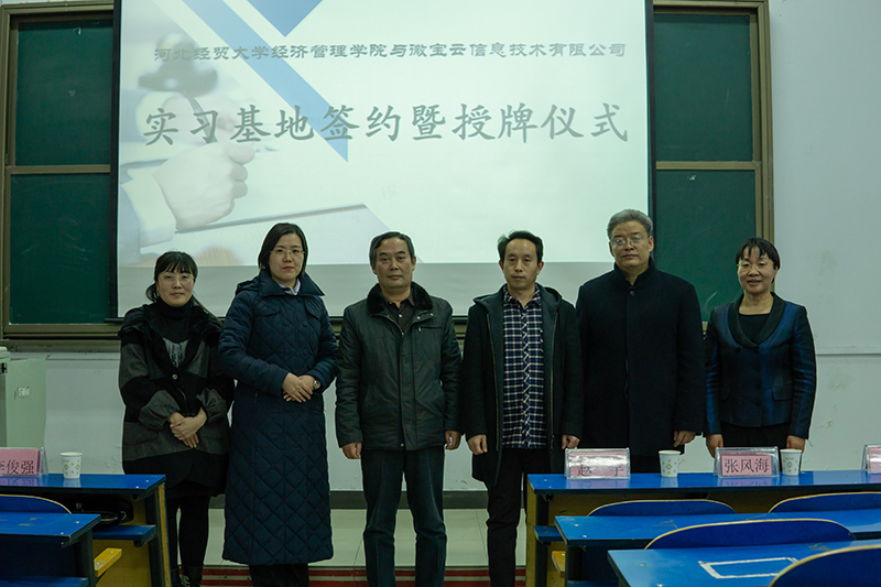 12月24日下午,会计系在西院东阶梯教室举办与微宝云信息技术有限公司建立实习基地的签约暨授牌仪式。微宝云信息技术有限公司李俊强总经理、2138CC太阳集团副院长赵宇、实践教学部部长张风海、会计系党总支书记蔡杨、会计系主任王慧霞、微宝云信息技术有限公司项目代表及196名学生参加本次活动。
