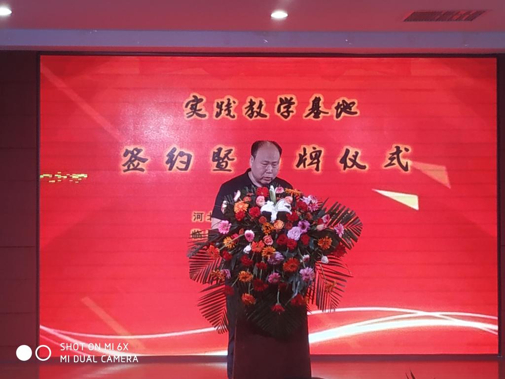 张进良代表学院致辞。他详细介绍了我院的专业能力,以及与知名企业、知名品牌合作情况等相关内容,并对我院实践教学基地落地临漳县表示充满信心。