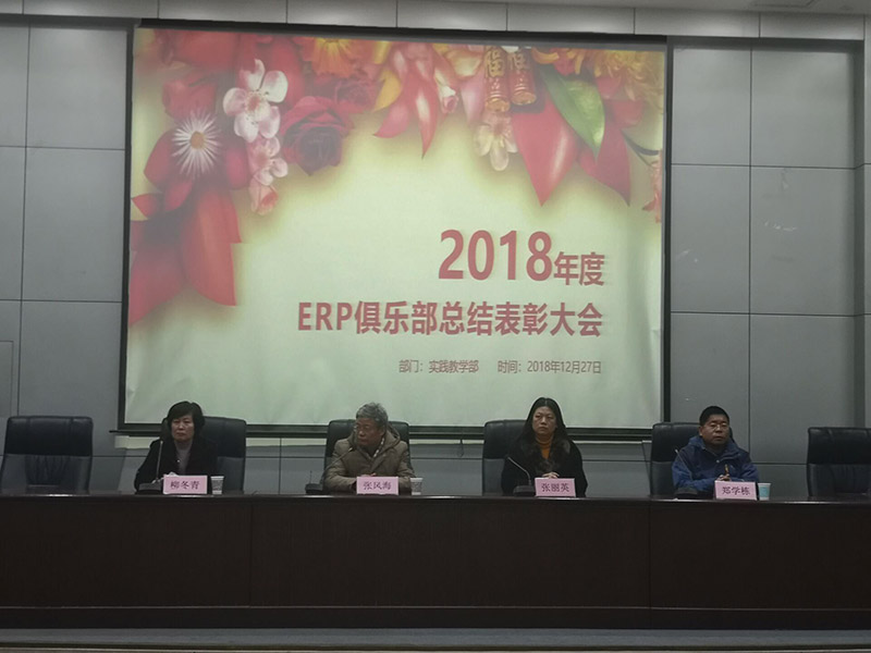 12月27日下午,实践教学部2018年度ERP俱乐部总结表彰大会在图书馆报告厅举行。我院党委副书记张丽英、经济系书记郑学东、实践教学部部长张风海、副部长柳冬青出席活动,ERP俱乐部200多名学生参加了活动。