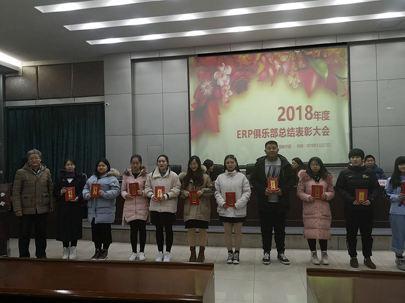 会上,由负责ERP俱乐部竞赛活动的三位老师做了工作汇报。由张代立老师负责的“学创杯”2018全国大学生创业综合模拟大赛河北省省赛、第三届全国大学生人力资源管理知识技能竞赛以及第十二届“新道杯”全国大学生会计技能大赛进行总结、三个竞赛共获得国赛奖项2个,省级奖项6个;由何小强老师负责的2018全国企业竞争模拟大赛全国总决赛进行总结,第三届(2018)全国工商企业管理技能大赛、第十四届全国大学生“新道杯”沙盘模拟经营大赛河北总决赛,三个竞赛共获得国赛奖项3个,省级奖项2个;由张啸老师负责的2018第十届“创新创业”全国管理决策模拟大赛全国半决赛、总决赛共获得大区赛奖项6个,国家级奖项1个,ERP俱乐部获奖学生总人数达到56人次。涌现出大批优秀学生,以优异的成绩圆满完成了2018年工作计划。大会对2018年度ERP俱乐部所有获奖学生进行表彰,并颁发荣誉证书。
