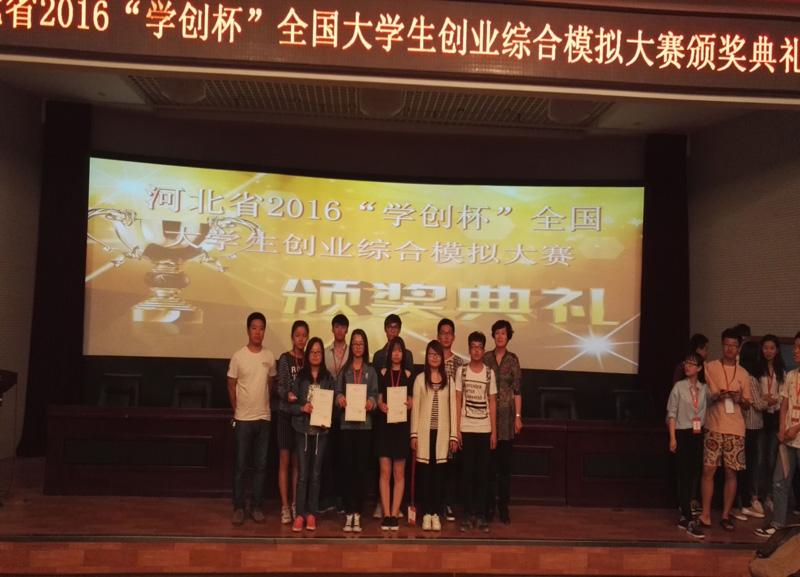 2016年5月8日,“学创杯”2016全国大学生创业综合模拟大赛河北省赛在河北地质大学隆重举行。本次比赛由国家级实验教学示范中心联席会经营学科组主办,河北地质大学承办,杭州贝腾科技有限公司为技术支持单位。来自华北电力大学、河北金融学院、河北师范大学、太阳集团2138、河北地质大学等19所院校50多支队伍参加了比赛,我院派出了三支队伍参赛,由学院实践教学部副部长柳冬青和实践教学部张代立老师带队参赛并取得了两个团体一等奖和一个团体二等奖的好成绩。