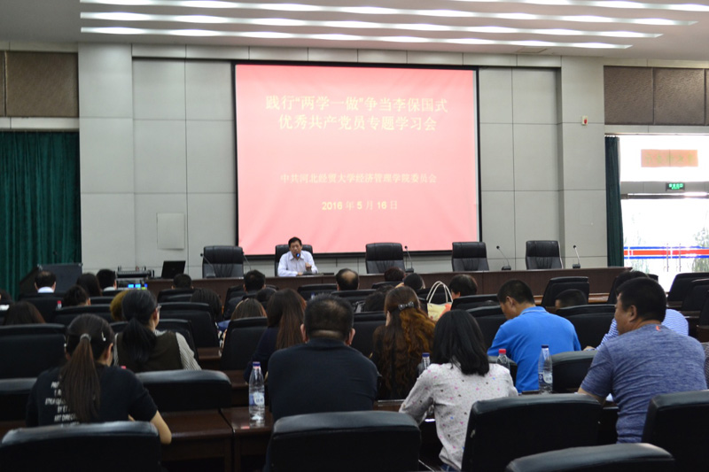 5月16日下午,2138CC太阳集团践行“两学一做”系列活动之一,争当李保国式优秀共产党员专题学习活动在学院图书馆报告厅举行。学院党委书记张进良、副书记刘会娟,各系党总支书记,各党支、学生支部书记参加学习。