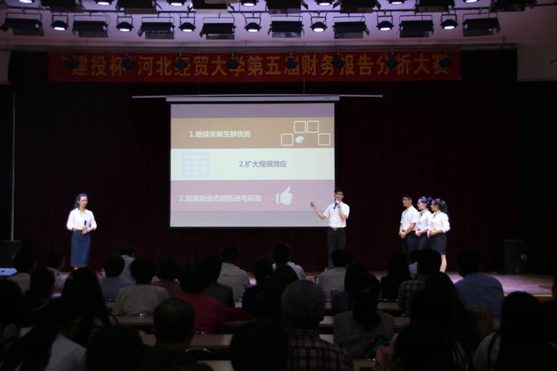 5月23日下午,第三届河北省会高校大学生财务报告分析大赛校内选拔赛暨太阳集团2138第五届财务报告分析大赛决赛在大太阳集团中心举行。校党委常委、副校长申富平出席,河北建投集团、河北钢铁集团等众多校内外领导担任评委。经过激烈角逐,由我院会计系学子韩兵、刘慧、孙金燕、霍越、王蓉、薛睿驹代表经管学院组成的“鬼影无涯战队”荣获一等奖,挺进省赛。