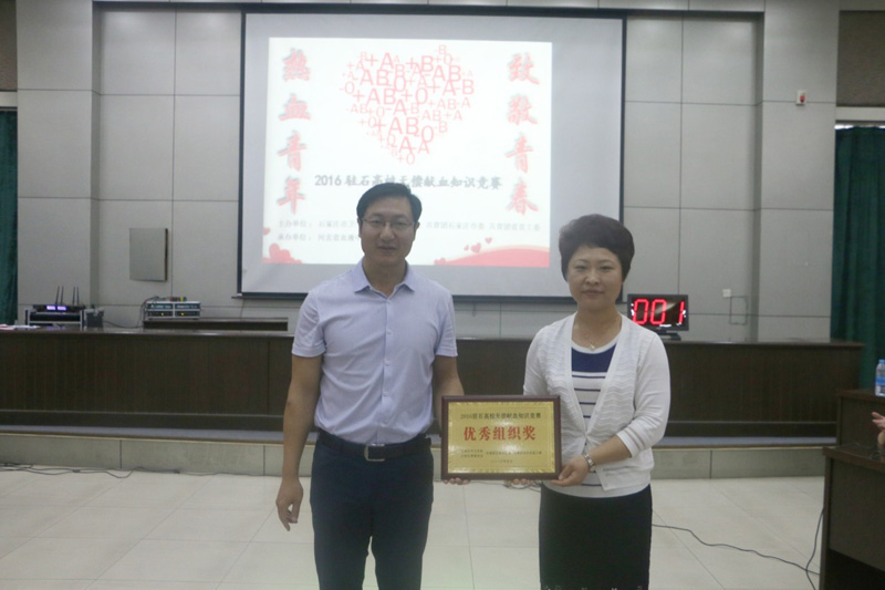 5月28日、29日,由石家庄卫生计生委、共青团石家庄市委、共青团河北省直工委联合主办,河北省血液中心承办的“2016驻石高校无偿献血知识竞赛”在我院图书馆报告厅举行。在本次活动中,我院获得优秀组织奖。河北省血液中心主任、党委书记戚海、血液中心副主任陈莉、业务处处长常缨、质量法规处副处长王庆明、学院党委副书记刘会娟出席了本次活动。