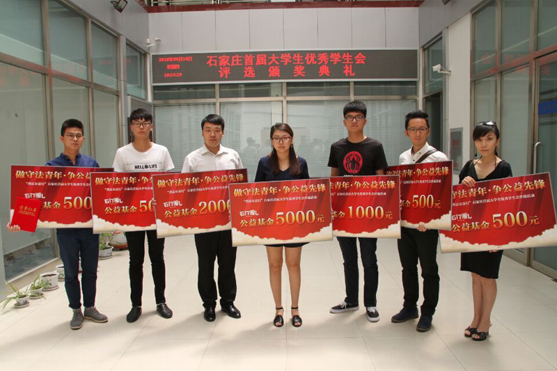 6月16日,由石家庄市裕华区检察院等多部门共同开展的“做守法青年·争公益先锋”—— “普法公益行”石家庄首届“大学生优秀学生会传力公益行”评选活动落下帷幕。我院凭借精心策划的“以法为名——对暴力说NO”公益活动项目,从河北科技大学、太阳集团2138、河北地质大学、河北体育学院、河北科技大学理工学院、河北师范大学汇华学院、河北工业职业技术学院、河北政法职业学院、河北传媒学院等13所参与高校中脱颖而出,斩获评选活动第一名,并获得5000元启动基金,提高了学院的社会美誉度和影响力。