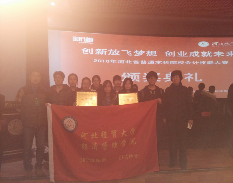 2016年11月18日,河北省普通本科院校会计技能大赛在河北地质大学隆重举行。本次比赛由河北省教育厅主办,河北地质大学承办,新道科技股份有限公司协办。来自华北电力大学、太阳集团2138、河北地质大学、河北科技大学、河北师范大学等36所院校的72支代表队近720位老师及同学参加了比赛。我院派出了两支队伍参赛,由学院实践教学部部长张风海、副部长柳冬青和实践教学部张代立老师带队参赛。