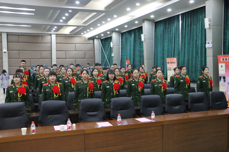 11月21日,我院国旗文化宣讲暨第七届国旗护卫队换届仪式在图书馆报告厅举行。学工部部长杜兰柱、副部长王敏、学工部邱学亮出席活动,国旗护卫队14级队干,15、16级全体成员以及各系学生代表参加了此次活动。