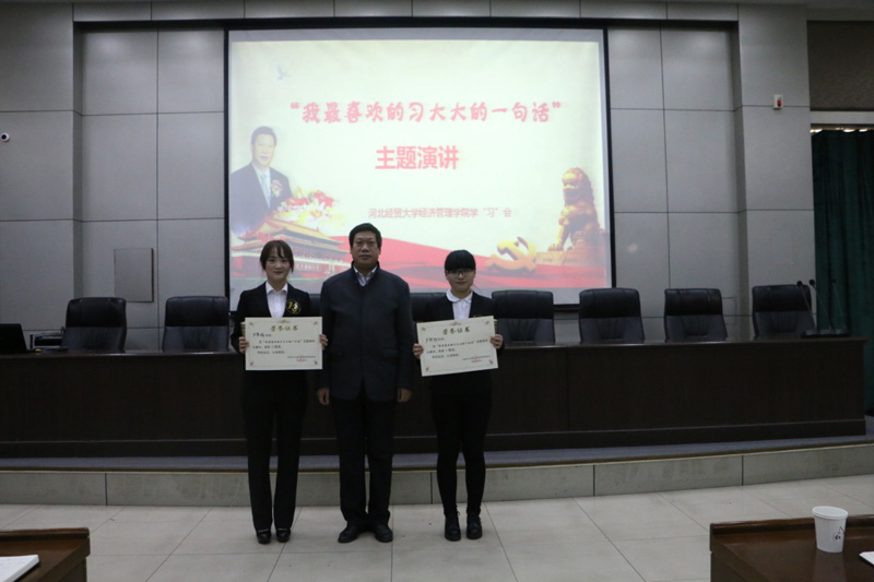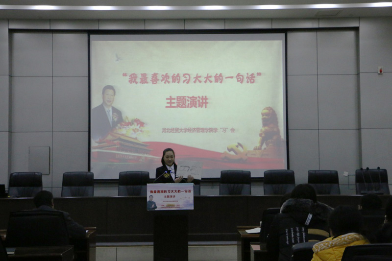 12月5日下午,由我院学“习”会主办的“我最喜欢的习近平的一句话”主题演讲比赛决赛在学院图书馆报告厅举行。院党委书记张进良、副书记刘会娟,经济系党总支书记郑学栋、管理系党总支书记刘钺、文法系党总支书记高维林出席活动并担任评委。活动由我院学“习”会会长张鹏主持。