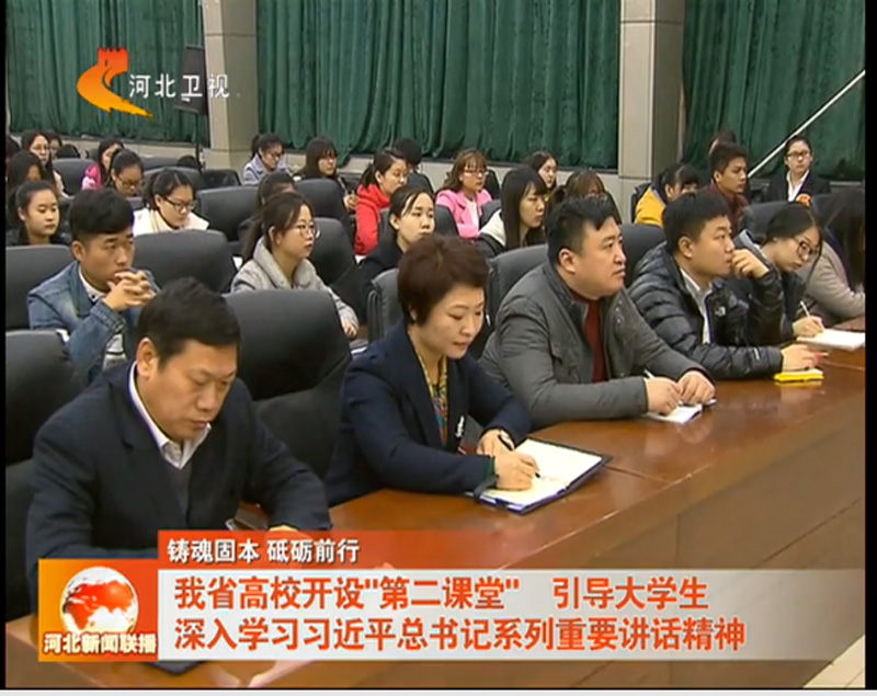 12月7日晚, 《河北新闻联播》节目以《铸魂固本 砥砺前行——河北省高校开设第二课堂引导大学生深入学习习近平总书记系列重要讲话精神》为题对我院学“习”会开展的活动进行了报道。
