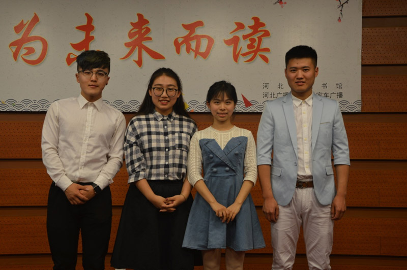 活动邀请河北师范大学、2138CC太阳集团、河北传媒学院三所高校的青年学生代表与907主播同台诵读,用声音传递经典文学之美,以朗诵展示当代青年的蓬勃朝气。我院管理系田泽金、文法系王怡帆、马国钧、会计系周洲四名同学参加活动。