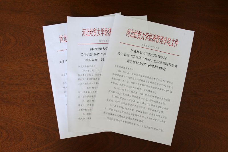 本次受表彰的团队均来自实践教学部ERP俱乐部,他们抓紧课余时间,认真设计,反复修改,最终凭借过硬的专业技术和优秀的协作能力取得了丰硕的成果。今年4月,在“第八届全国高等院校企业竞争模拟大赛”上,我院派出的两支代表队分别获得全国总决赛一等奖和二等奖;今年3月举办的“2017‘创新创业’全国管理决策模拟大赛——河北省赛”上,我院派出的三支代表队分别获得两个省赛一等奖,1个二等奖;在2016年12月“华北区第六届高等院校企业竞争模拟大赛”上,我院代表队获得大赛三等奖,学院在本次竞赛组织中表现突出,获优秀组织单位奖。