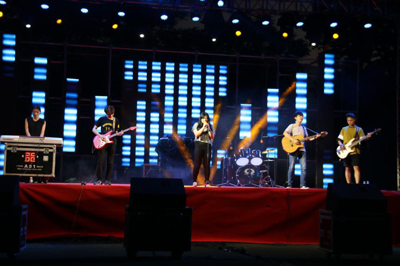 电子音乐节在变换的光影和躁动的乐声中盛大开幕,经过了近一个月的筹备及准备工作,为毕业生们大学校园的最后时光留下难以忘怀的美丽印记。即将毕业走出校园的王薏琳说,在毕业前能有这样的机会参加学院的音乐节,在歌声中告别校园,也是一种很独特的滋味。