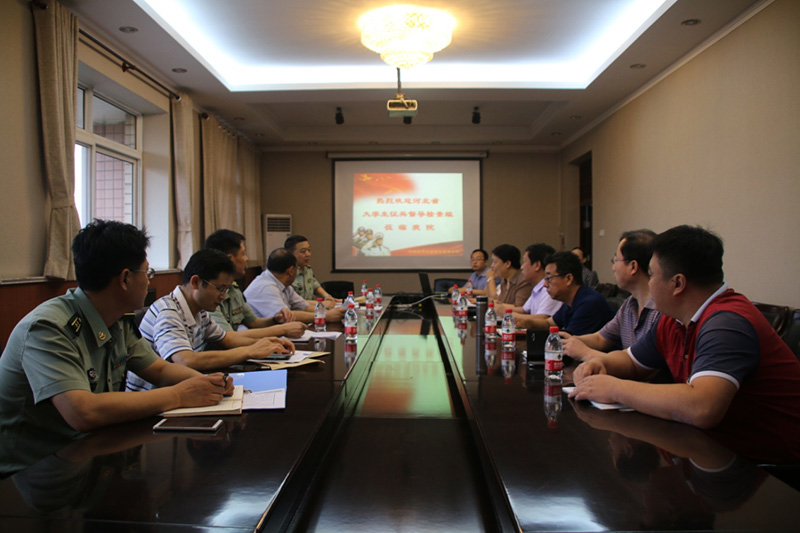 6月13日上午,河北省教育厅学生处处长马贵明、河北省征兵办副处长杜国庭,石家庄市警备区参谋长陈勇等一行5人莅临我院,检查督导2017年大学生征兵工作,并对有关重点、难点工作进行了交流。院党委书记张进良、党委副书记张丽英、各系党总支书记出席会议,学工部相关人员、辅导员代表参加会议。