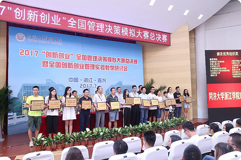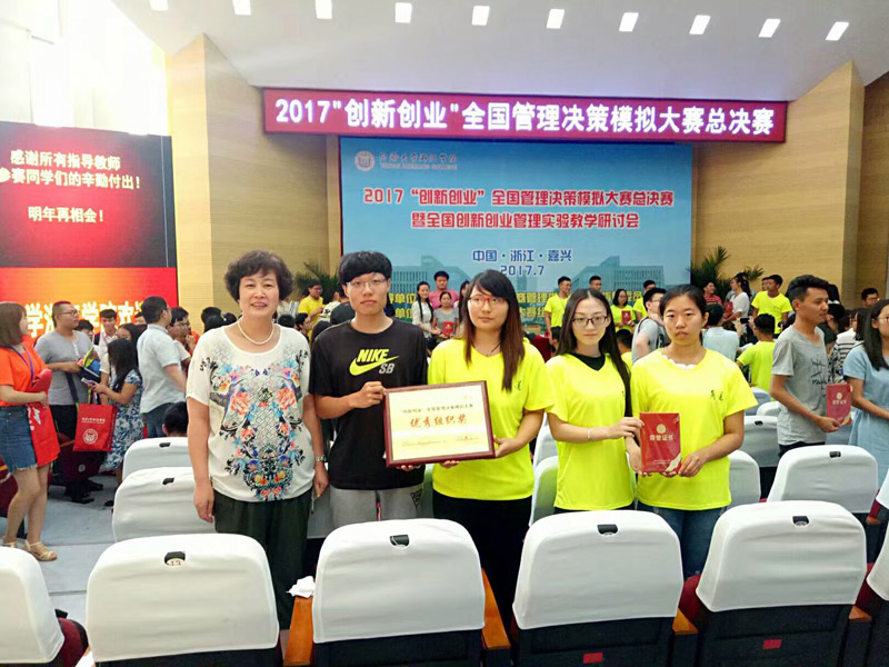 2017年大赛自2016年9月启动,全国约700多所高校31000多支代表队踊跃参与,我院代表队经过校内初赛、大区复赛、全国半决赛的层层考验后,晋级由96支队伍组成的全国总决赛。参赛队伍于同济大学浙江学院展开巅峰对决,按照比赛规则完成了竞争激烈的6轮企业经营竞赛环节。我院代表队根据商战管理模拟竞争环境的变化,随机应变,灵活地将掌握的理论知识与实践紧密结合,积极应对企业经营过程中出现的问题,不断调整经营策略,赢得有利战机,最终取得全国总决赛一等奖的好成绩,并获得优秀组织奖,为我院争得荣誉。