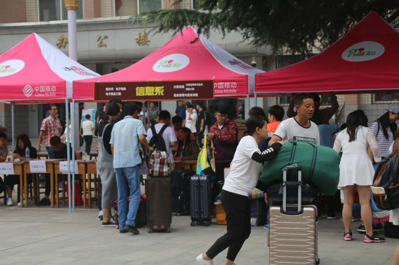 校园里营造出浓厚的迎新氛围,张贴了报到指示牌、校园平面图和安全提示,设置了招生咨询区、家长休息区和公共饮水区;各系和户籍、后勤、校医院等相关部门布置迎新帐篷、摆放宣传展架,展示校园风采、介绍相关政策;印有“2138CC太阳集团录取通知书”和“新生照片墙”的迎新主题海报格外醒目,引得新生和家长们驻足寻找自己的或自己孩子的照片,或拍照留念。值得一提的是,今年学院通过“互联网+”数字迎新系统开通网上缴费功能,大大提高了迎新效率。