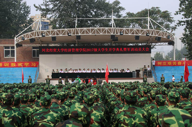 9月3日上午,我院2017级大学生开学典礼暨军训动员大会在南校区操场举行。大学校领导和驻石某部队领导出席了典礼,学校办公室、学生处、教务处、学院领导、各系部负责人、新生辅导员和全体新生参加了开学典礼。典礼由院长刘华光主持,校党委副书记、校长纪良纲致辞,学院党委书记张进良做军训动员报告。