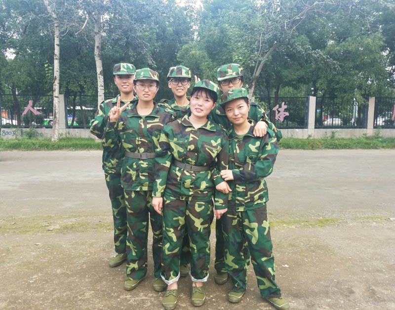 在军训中新生们很快培养了深厚的感情,以宿舍成员合影留念的方式记录了那些并肩奋斗的时光。