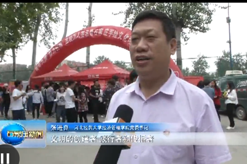 9月27日上午,石家庄电视台《石家庄要闻》记者来我院,对我院积极组织全院师生参与石家庄创建全国文明城工作进行采访,并于 9月28日以《创建文明城 喜迎十九大—青年力量 助力创城》为题播出该报道。