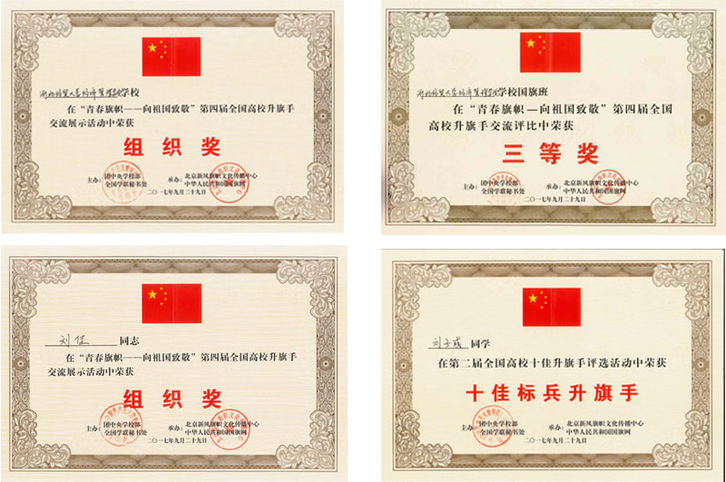 为庆祝中华人民共和国成立68周年,《中华人民共和国国旗法》颁布27周年,突出发挥升旗仪式的教育引导作用,由团中央学校部、全国学联秘书处主办的2017“青春旗帜——向祖国致敬”第四届全国高校升旗手交流展示活动于2017年9月28日至10月1日在北京隆重举办,我院学生工作部老师刘佳、邱学亮带领17名国旗护卫队队员参加。
