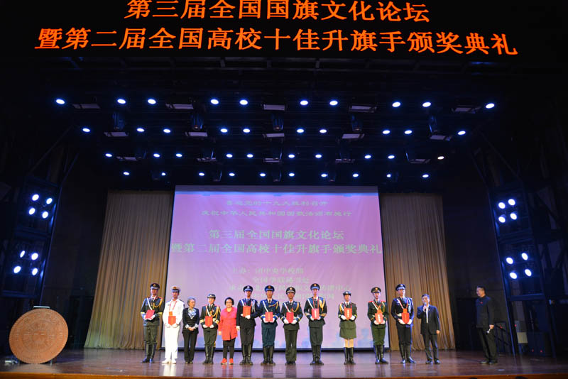 9月29日上午,来自全国各地35所高校的国旗护卫队在北京航空航天大学体育场参加评比,我院国旗护卫队荣获全国高校国旗班交流建设团体三等奖,我院被授予优秀组织奖。下午,全国国旗文化论坛暨第二届全国高校十佳升旗手颁奖典礼在清华大学礼堂进行。通过初审和网络投票等环节对入围的全国30强进行了基础动作评比、专业动作评比、“国旗在我心中”即兴演讲和国旗知识问答等一系列评比活动,我院国旗护卫队队员刘子彧获得全国十佳升旗手荣誉称号。10月1日清晨国旗班的成员们在天安门观礼台观看了升旗仪式,见证了天安门庄严地将五星红旗升起的那一刻。