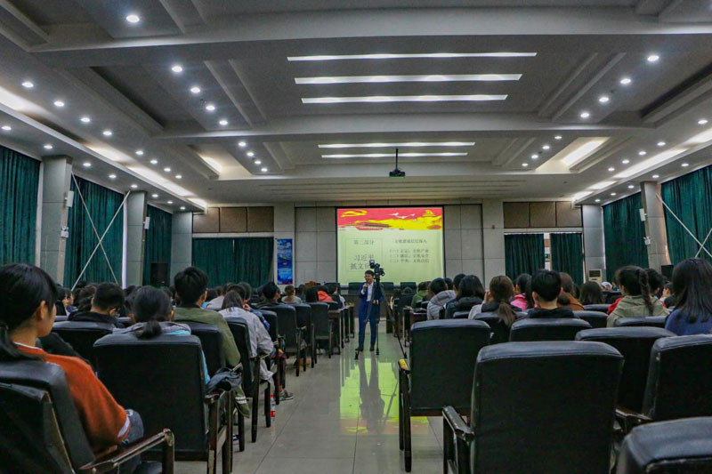 10月18日下午,中共河北省委党校付丁丁老师受邀在我院图书馆报告厅作了题为“习近平治国理政思想正定探源”的精彩报告。学院党委副书记张丽英参加,院、系、班各级团学干部300余人聆听了报告。报告由团委书记陈玲主持。