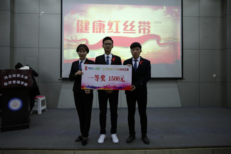 “健康红丝带”活动是由石家庄市卫生计生委和石家庄广播电视台联合主办的,作为活动的收官之作,石家庄高校防艾知识竞赛于12月1日至4日在省会多所院校火热开启,四天时间,吸引了4000余名大学生参与网络答题。决赛单元,我院和河北地质大学、石家庄学院、河北传媒学院等10所院校各派出3名优秀选手参与现场答题,比赛异常激烈,必答题限定时间,考验选手对知识掌握的熟练程度和反应能力,风险题则需要根据对手的得分情况选择自己有把握的题目进行选答。最终我院代表队3名选手凭借出色的表现获得决赛第一名的好成绩,河北地质职工大学、理工职业学院分别获得第二、第三名。嘉宾们对选手的表现进行了点评并颁奖。