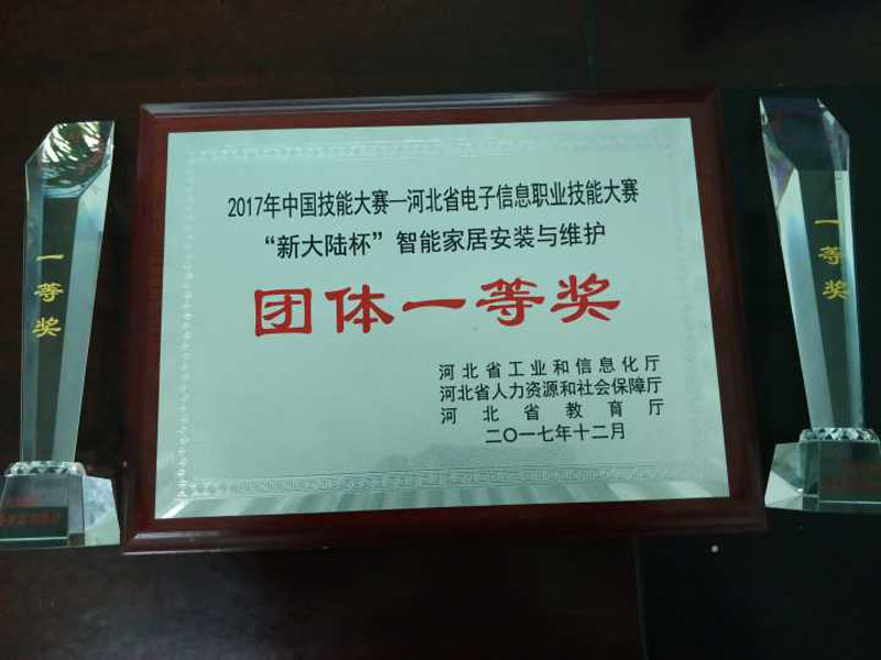 12月11日-12日,中国技能大赛“新大陆杯”智能家居安装与维护省级决赛在河北交通职业技术学院举办,我院派出了信息系两支代表队参赛,在40支队伍中表现出众,分别获得团体一等奖和团体二等奖,刘兵、杨昊荣获个人一等奖,徐宏伟、李娜、李莹莹、胡其昊荣获个人二等奖,为我院争得了荣誉。