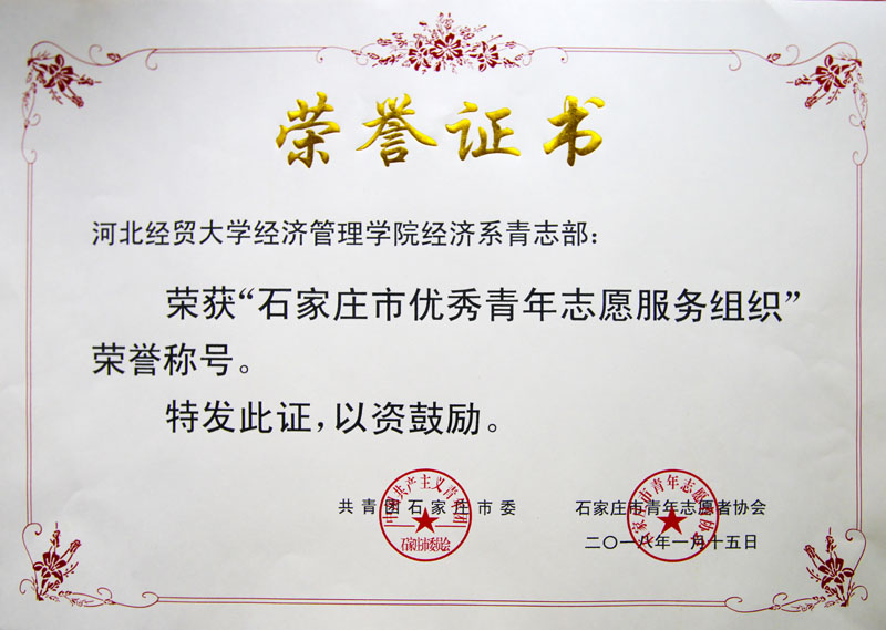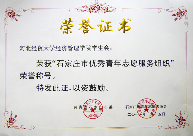 3月5日,由石家庄团市委和市青年志愿者协会联合组织的“青春奉献新时代 争做雷锋我先行”石家庄市优秀青年志愿者分享交流会在石家庄人民会堂举行。我院学生会被授予“石家庄市优秀青年志愿服务组织”荣誉称号。