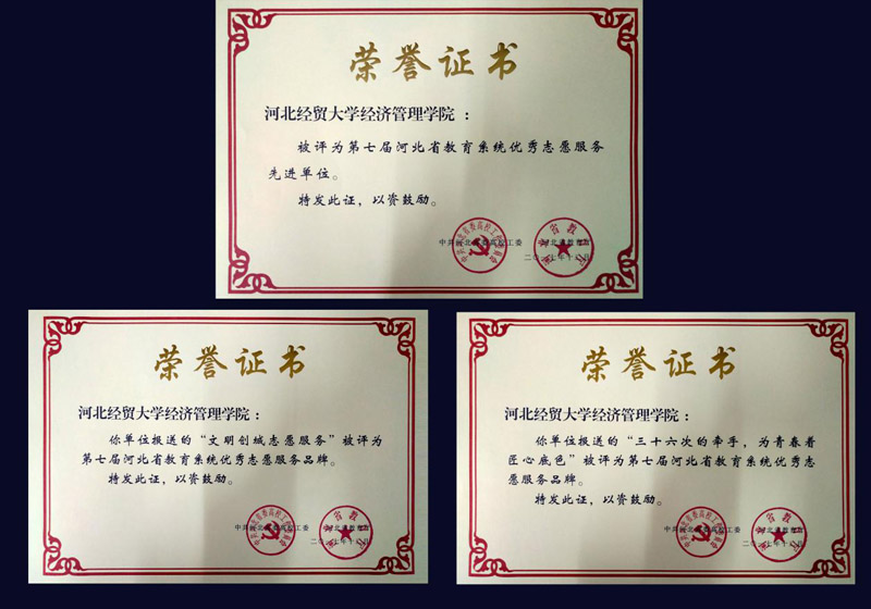 在第七届河北省教育系统志愿服务评比活动中,我院被评为优秀志愿服务先进单位,其中“文明创城志愿服务”“三十六次的牵手,为青春着匠心底色”活动被评为优秀志愿服务品牌;我院信息系、管理系协会青年志愿者被评为优秀志愿服务组织;梁博宇、姜瑞被评为优秀志愿服务先进工作者;唐莉、赵云岩被评为优秀志愿者。