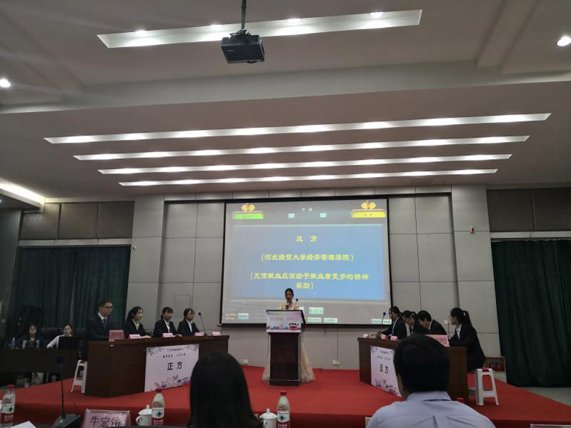 辩论赛开始前,河北省血液中心党委副书记牛宏伟致辞表示,无偿献血是爱心奉献的体现,能够使患者解除病痛甚至抢救他们的生命。希望通过这次活动培养大学生客观理性看待事情的能力,拉近省血液中心与大学生之间的距离,让大学生进一步了解无偿献血公益事业,从而加入到无偿献血队伍中来。