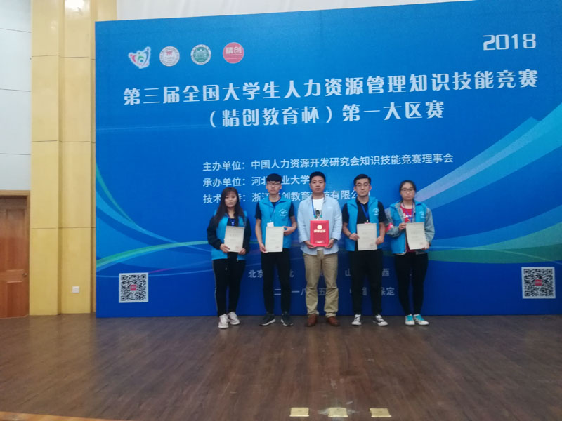 2018 年5月5日 ,第三届全国大学生人力资源管理知识技能竞赛(精创教育杯)第一大赛区暨高峰论坛在河北农业大学正式开幕。本次大赛由中国人力资源开发研究会知识技能竞赛理事会主办,河北农业大学商学院承办,浙江精创教育科技有限公司提供技术支持。
