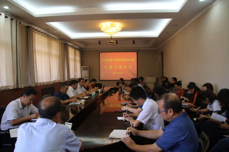 9月6日下午,我院中层干部会在学院行政楼五楼会议室召开。学院领导和全体中层干部参加会议。会议由学院党委书记张进良主持。