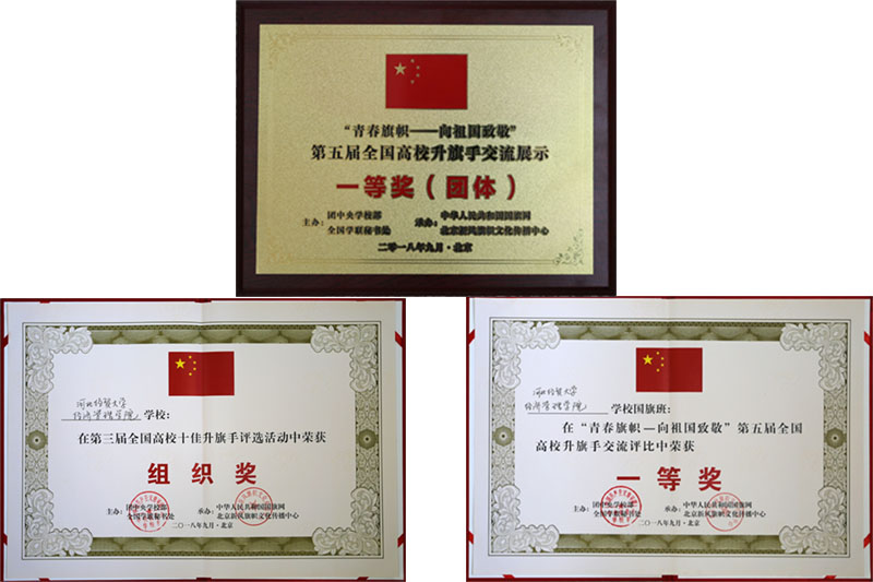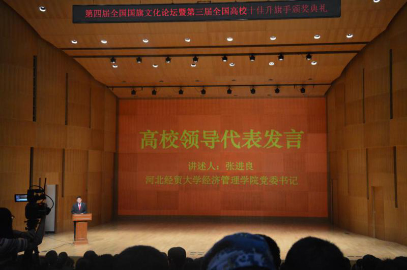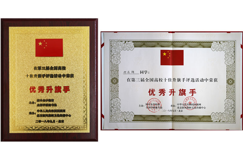 9月29日上午,来自全国各地38所高校的国旗护卫队在北京中国陆军防化学院参加评比,我院国旗护卫队以优异的成绩荣获全国高校国旗手交流展示一等奖;国旗护卫队队员邢浩楠通过基础动作、专业动作、即兴演讲和知识问答等一系列评比最终获得全国优秀升旗手奖,我院荣获组织奖。张进良作为全国高校领导代表在全国国旗文化论坛上发言,他鼓励同学们秉承习近平总书记对青年学子的期望,夯实专业素养,提升综合技能,以“弄潮儿向涛头立”的精神,完成“举旗帜、聚民心、育新人、兴文化、展形象”的使命。