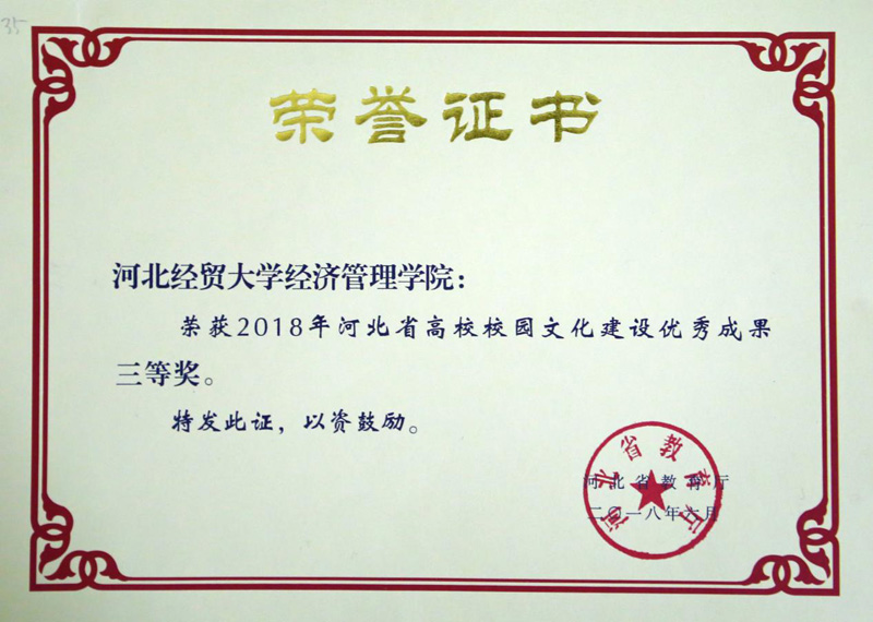近日,我院在2018年河北省教育厅组织的河北省高校校园文化建设优秀成果评选中获得三等奖。