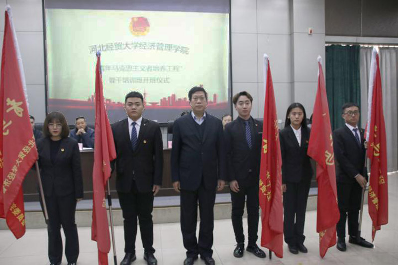 张进良宣布2018年“青马工程”培训班开班并授予班旗。本期学员代表和青马班辅导员代表分别上台发言。