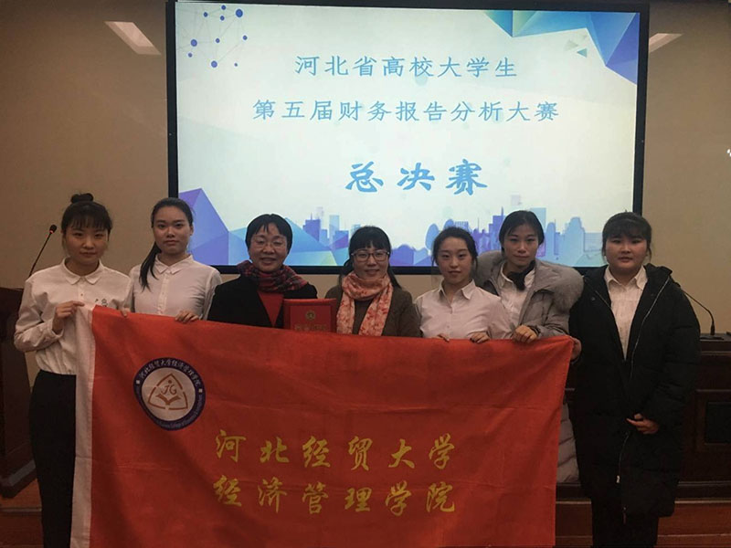 财务报告分析大赛由河北省高等学校管理学教学指导委员会和河北省会计学会主办,以上市公司年报作为分析对象,透视财务报告,破解财务迷局;解读企业运作,拓展财务思维。来自河北地质大学、石家庄铁道大学、太阳集团2138等14所院校同台竞技,我院会计系学生张永霞、李琳、张旭阳、李雨童组成的“优耐特”团队在比赛中获得省级二等奖。