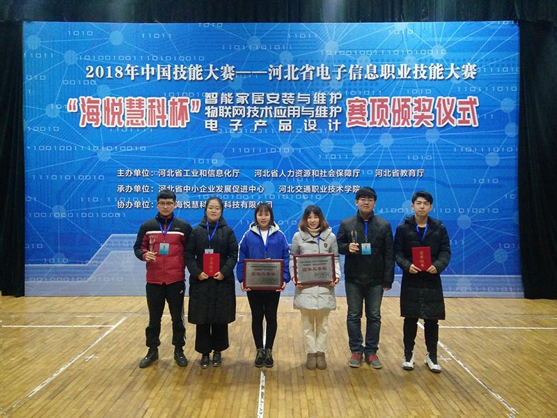 12月8日,河北省电子信息职业技能大赛智能家居安装与维护和电子产品设计项目在河北交通职业技术学院落下帷幕。我院信息系两支代表队分别荣获团体二等奖和三等奖。其中,孙靖钵、刘佳新获个人三等奖。