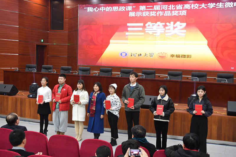 12月22日晚,由省教育厅主办的“我心中的思政课”第二届河北省高校大学生微电影展示活动颁奖礼在保定河北大学隆重举行。我院选送的微电影作品《美丽中国,我是先行者》荣获河北省三等奖,并受邀参加颁奖礼活动。
