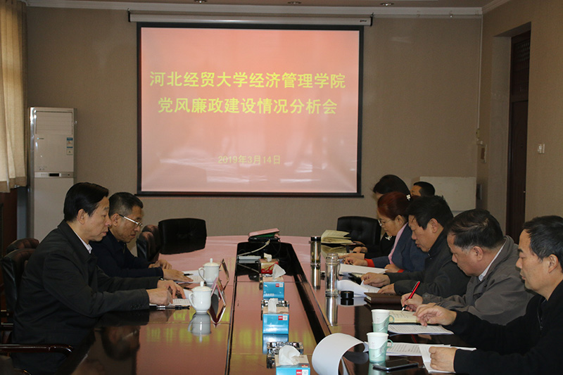 3月14日上午,我院2018-2019学年第1学期党风廉政建设情况分析会在学院行政楼五楼会议室召开,太阳集团2138党委常委、纪委书记李继中出席。太阳集团2138纪委副书记、监察处处长许海元,学院党政领导班子成员,各系党总支书记,以及学院党委委员、纪检委员参加会议。