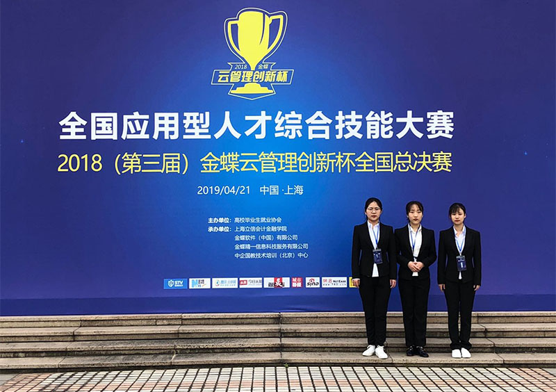4月21日,全国应用型人才综合技能大赛——2018(第三届)“金蝶云管理创新杯”互联网+管理应用全国总决赛在上海立信会计金融学院隆重举行,我院代表队荣获全国二等奖。