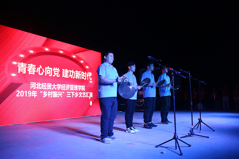 为鼓励学生在社会实践中受教育、长才干、做贡献,以实际行动投身乡村振兴战略实施,7月7日晚,院团委暑期社会实践小分队响应“三下乡”活动号召,赴曲阳县雷程庄村,为老百姓们带来一场“青春心向党•建功新时代”主题文艺晚会。学院党委书记张进良、副书记张丽英、曲阳县副县长门士敏、有关科局及晓林镇领导出席,雷程庄村百余位村民观看了晚会。