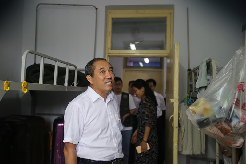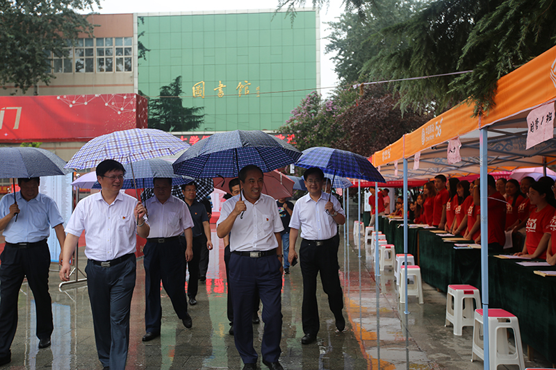 8月24日下午,新生报到期间,校党委书记董兆伟,校党委副书记、校长刘兵,校党委副书记陈亮冒雨到我院南西校区检查指导新学期工作,学院全体领导班子陪同。