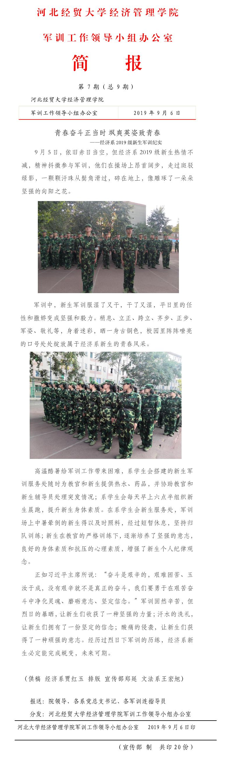 2019级新生军训工作简报第7期(总9期)