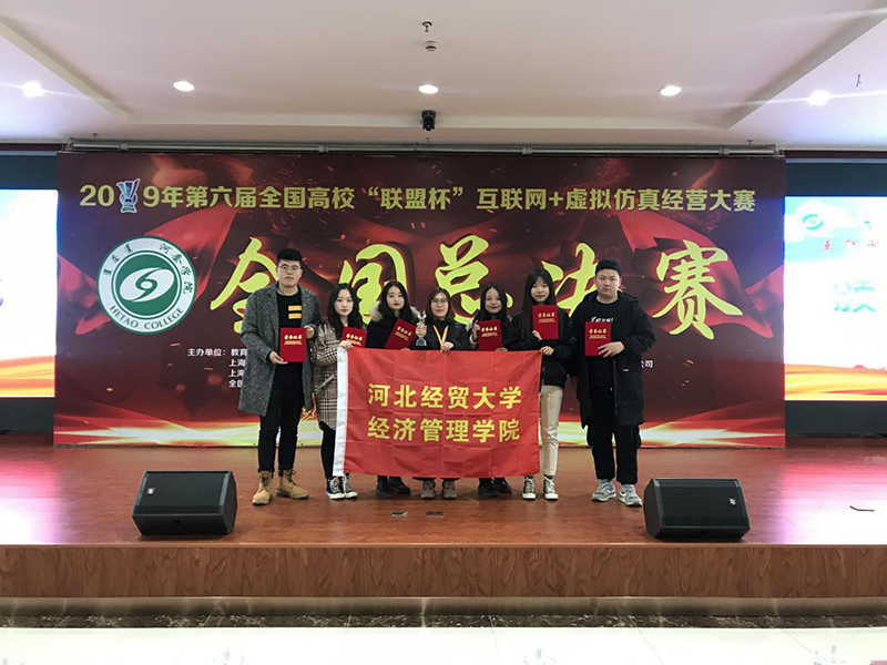 互联网+虚拟仿真经营大赛是教育部为贯彻落实习近平总书记关于强化育人工作的重要精神指示,促进创新人才成长,提高人才培养质量而举办的全国性的大赛。此次大赛吸引了近百所院校、近万名师生参加。经过层层选拔,最终有19个本科院校的25支参赛队伍进入总决赛。我院2016级市场营销1班的王磊、孙佳媛、曹啸崧、岳璐、郝冰、陈鑫在指导老师贺丽蕊的带领下,认真准备,沉着应战,荣获全国总决赛团队三等奖,为学院争得了荣誉。