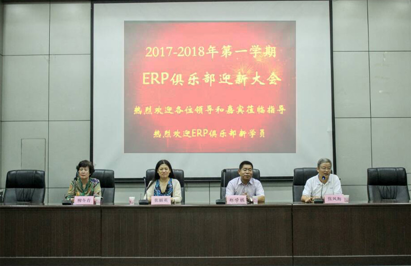 925日下午,由实践教学部主办的2017-2018年第一学期ERP俱乐部迎新宣讲大会在图书馆报告厅举行。学院党委副书记张丽英、经济系书记郑学栋、实践教学部部长张风海、副部长柳冬青出席了本次活动。