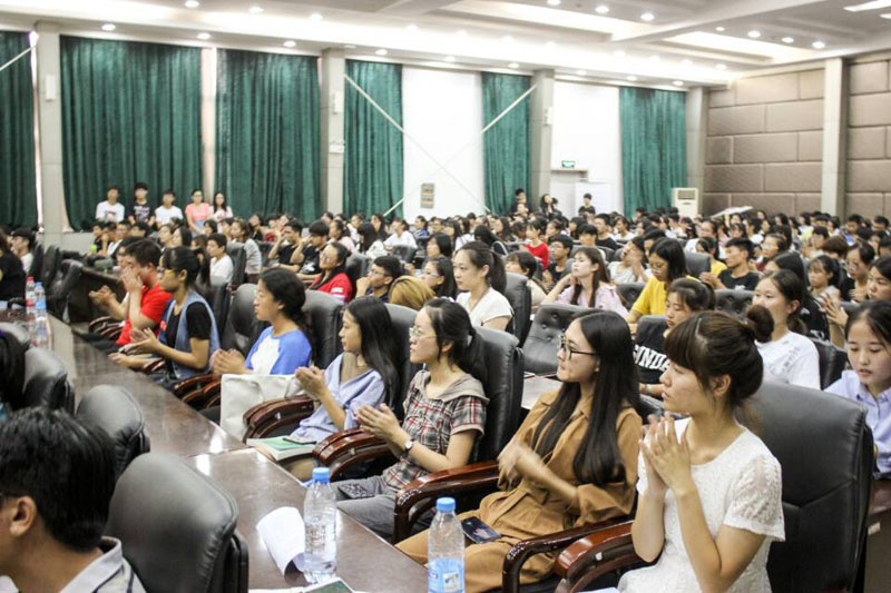 实践教学部何小强老师以图文并茂的方式对ERP俱乐部做了详细的介绍。内容包括本学期的ERP迎新情况、各项赛事介绍和历年来取得的成绩以及本学期培训安排等。随后,ERP俱乐部的5个协会学生代表也以PPT演讲的方式,分别向同学们以自己的亲身体会进行介绍,分享了他们通过培训、竞赛取得的收获与感悟,感染了在场的每一位同学,掌声不断。