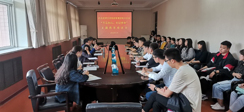 9月19日下午,文法系在我院行政楼5楼会议室召开“不忘初心、牢记使命”主题教育座谈会,系党总支书记白建锋、主任赵占亚、党务秘书徐丹、教务秘书李珊出席,各班学生干部30余人参加。