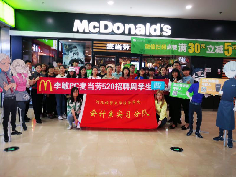 为提高同学们的实践能力,激发他们的学习热情,520日下午,在张艳敏和邓怀宇老师的带领下,会计系20名同学赴北京麦当劳食品有限公司万达广场店进行了参观学习。