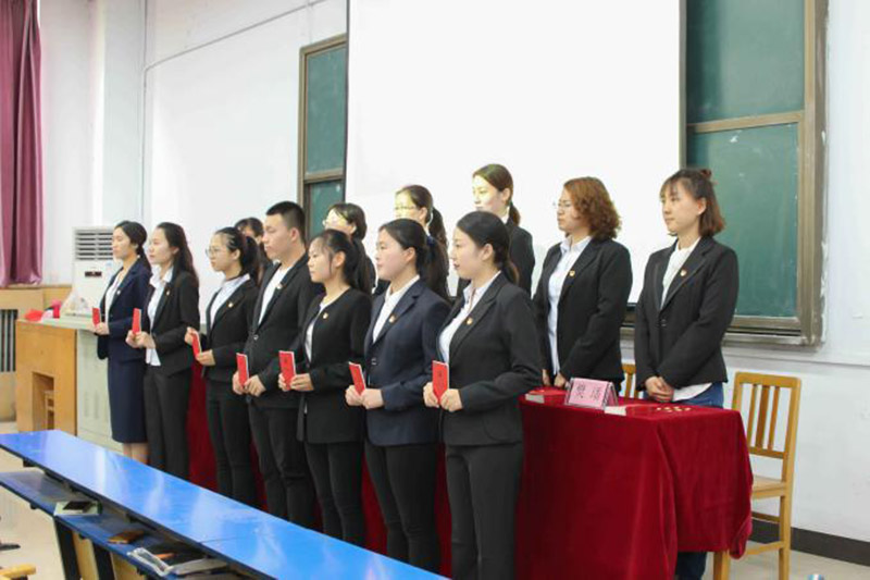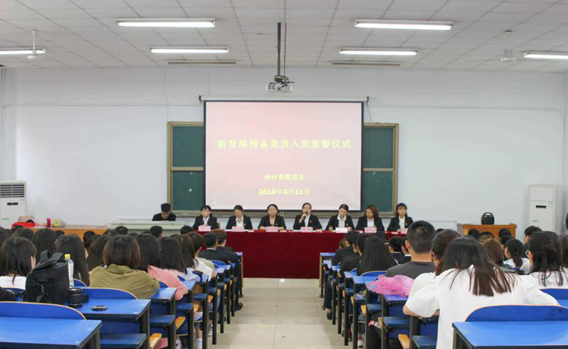 2018511日下午,会计系党总支在西校区召开了预备党员宣誓大会,出席此次大会的有学院组织部部长陈玲、会计系党总支书记蔡杨、会计系党总支委员王慧霞、张艳敏、邓怀宇和樊璠,同时参加会议的有57位新发展学生党员以及本学期确定的入党积极分子和发展对象共计150人列席了会议,会议由总支委员孙韦主持。