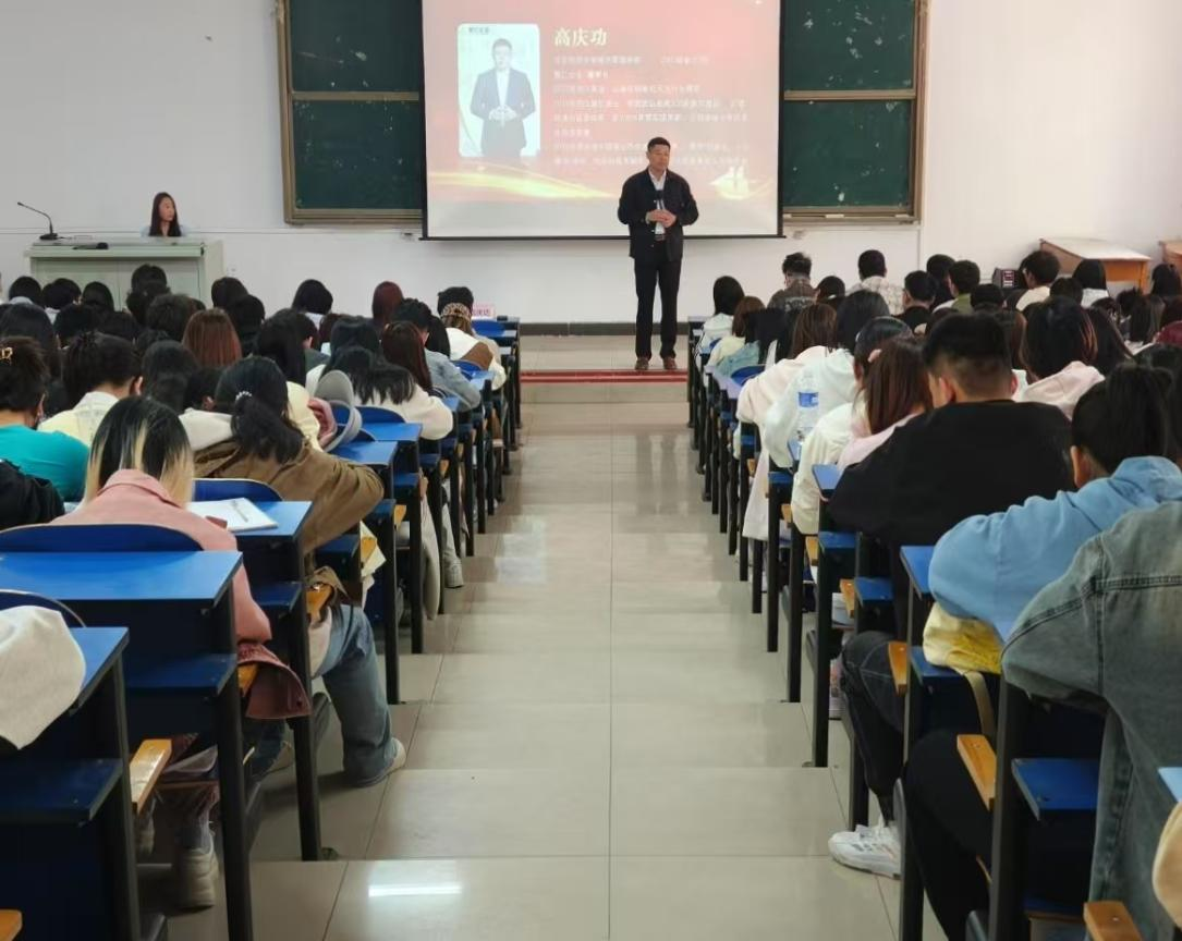 为进一步凝聚校友力量,持续引领在校学生的职业生涯发展,3月31日下午,会计系在西阶梯教室举办“校友引航,筑梦职场”——校友大讲堂。本次活动由2003级优秀校友、聚仁美业总经理高庆功主讲,系党委副书记张艳敏、部分辅导员及270余名学生参加。